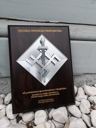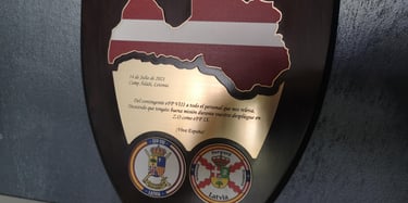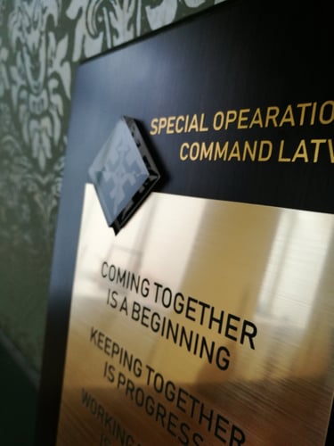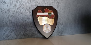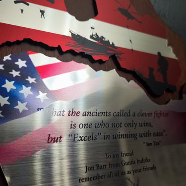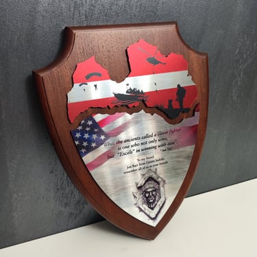 This handcrafted challenge coin honors service with your choice of personalized engraving. Perfect as a gift or award, it features a rugged design with bold orange accents against a matte black finish.